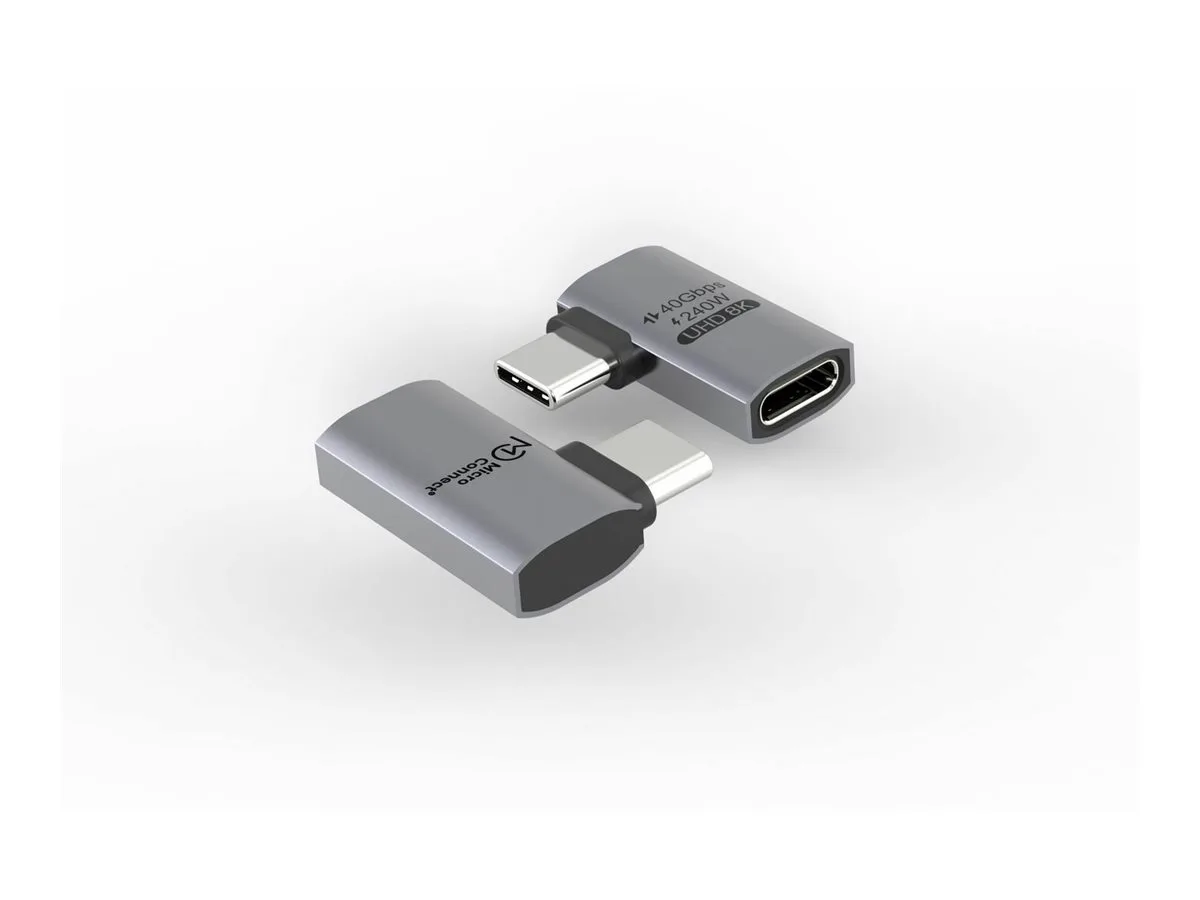 MicroConnect – USB адаптер – 24-пинов USB-C (M) ъглов към 24-пинов USB-C (F) прав – USB4 Gen3x2 – скорост на пренос на данни до 40 Gbps, USB Power Delivery (240W) – черен– PN USB4-CCFA-240W