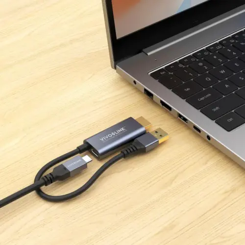 АДАПТЕР VIVOLINK HDMI &, USB-A to USB-C – Black – PN PROADHDMIТози адаптер може да се използва за лаптопи без USB-C портове.Vivolink PROADHDMI е компактен и практичен адаптер, предназначен да реши често срещан проблем в съвременните конферентни зали и AV инсталации: лаптопи без USB-C портове. Този адаптер предлага преобразуване както от HDMI, така и от USB-A към USB-C, което ви позволява да свързвате USB-C устройства, като камери, микрофони и дисплеи.Той поддържа 4K@30Hz видео и USB 3.0 скорост за USB периферни устройства, като камери или микрофони.Поддържа 4K@30Hz видео резолюцияПоддържа USB 3.0 скорост на данни за USB периферни устройства.Прикачен 15 см кабел