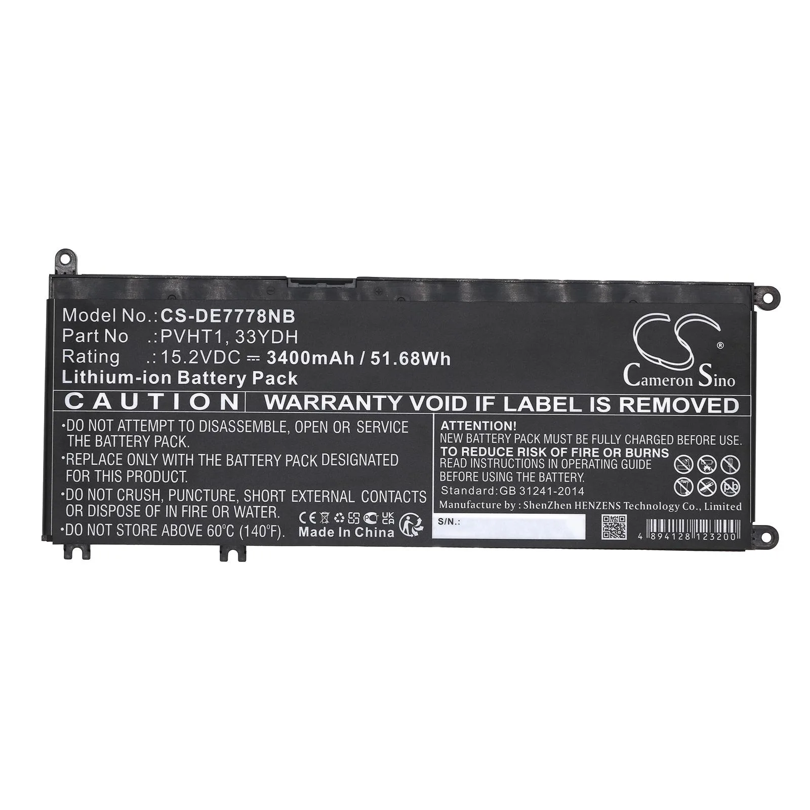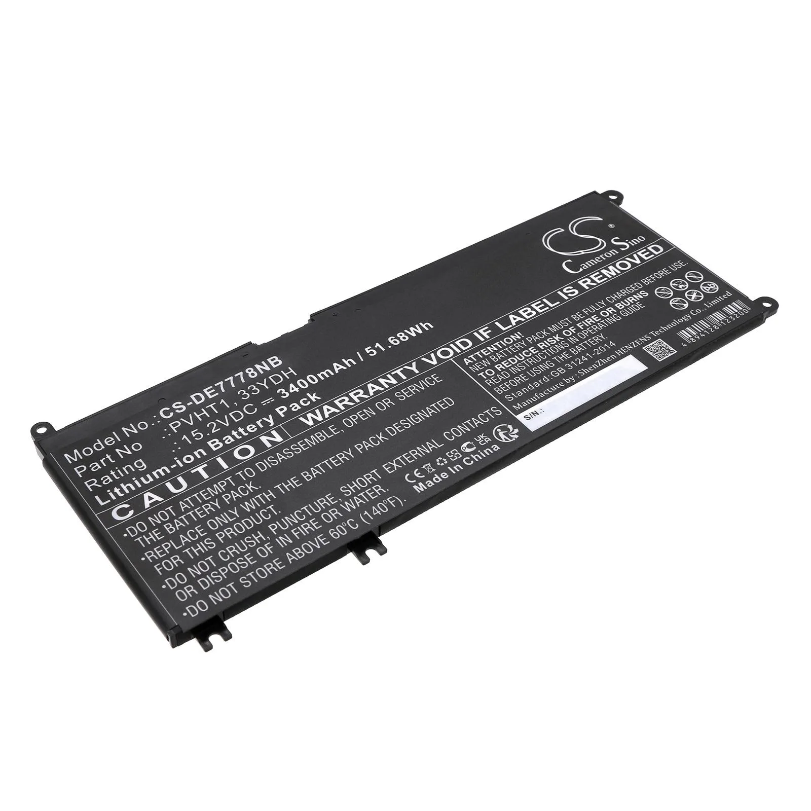 Батерия за лаптоп DELL G3 15, G5 15 5587, INS 15PD-1863BL, Latitude 15 3590, 33YDH, W7NKD, LiIon 15.2V 3400mAh CAMERON SINO