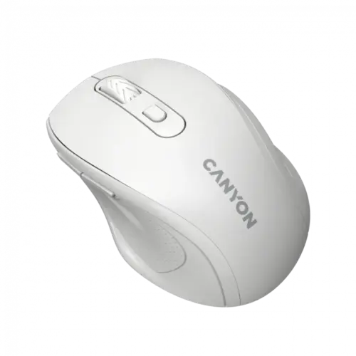 Безжична мишка Canyon 6 buttons wireless 2.4Ghz mouse, MX8650A Sensor, DPI up to 1600,Injection case, 3 M life times left and right switches, 2xAAA battery, ABS material, Size: 105x71x40mm, Weight: 59g, white