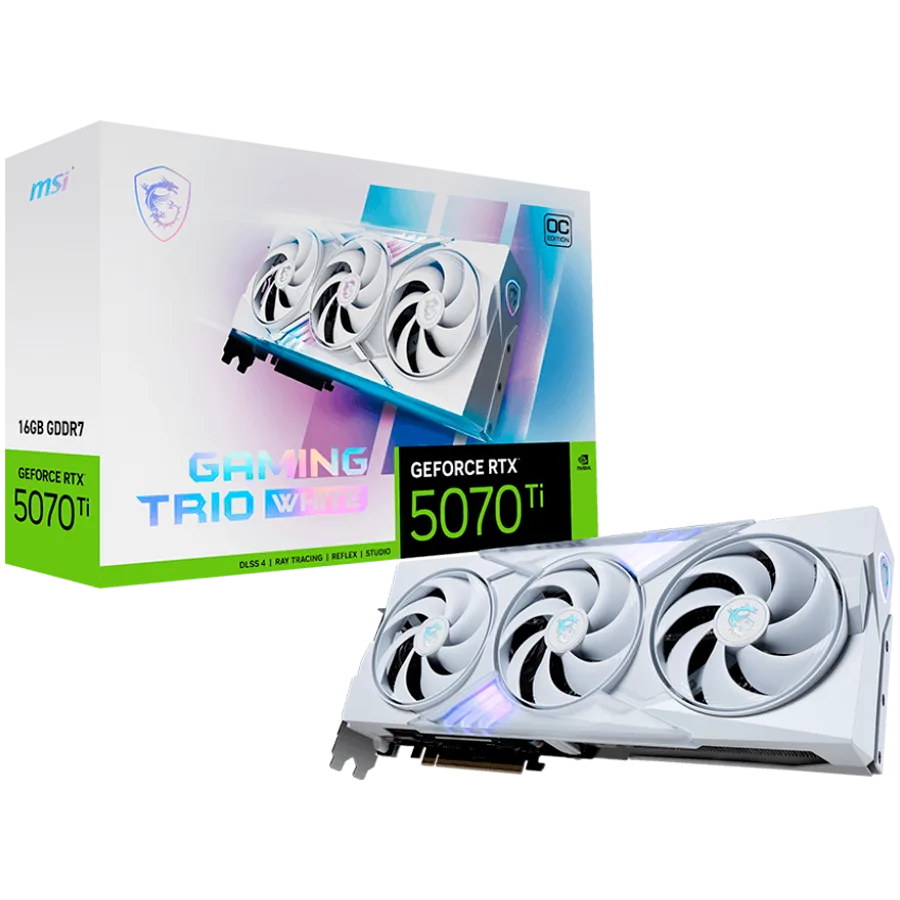 MSI Video Card Nvidia GeForce RTX 5070 TI 16G GAMING TRIO OC WHITE, 16GB GDDR7, 256bit, Effective Memory Clock: 28000MHz, Boost: 2580 MHz, 8960 CUDA Cores, PCIe 5.0, 3x DP 2.1b, HDMI 2.1b, Triple Fan, 1x16pin, 750W Recommended PSU, 3Y