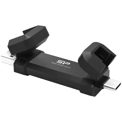 Външен SSD диск Silicon Power 500GB DS72 Dual USB-C/USB 3.2 Gen 2, Portable External SSD, Steam Deck and iPhone 15 Pro, R/W: up to 1050MB/s; 850MB/s, Black