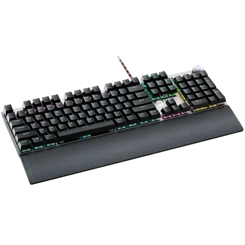 Геймърска клавиатура CANYON Nightfall GK-7, Wired Gaming Keyboard,Black 104 mechanical switches,60 million times key life, 22 types of lights,Removable magnetic wrist rest,4 Multifunctional control knob,Trigger actuation 1.5mm,1.6m Braided cable,US layout,dark grey, size:435*125*37.47mm
