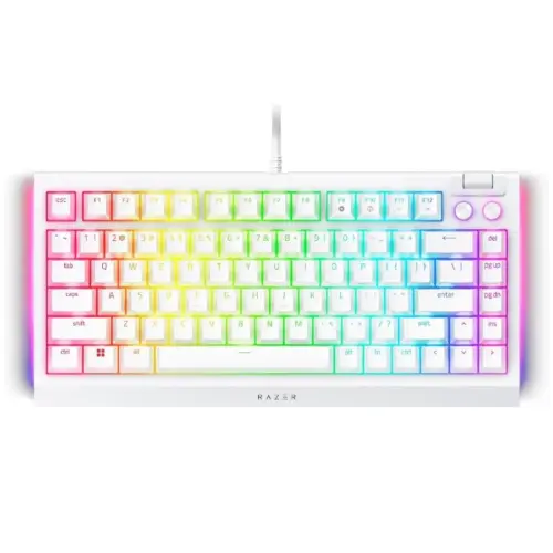 Razer BlackWidow V4 75% White, Gaming Keyboard, US Layout, Hot-swappable Design, Compact 75% Layout with Aluminum Case, Mechanical Switches (Tactile), Razer Chroma RGB, Dedicated media roller with 2 dedicated media buttons, Detachable Type C Cable
