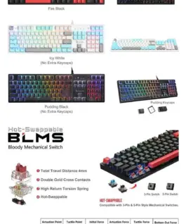 Геймърска механична клавиатура A4tech Bloody S520N Fire Black – BLMS Red Plus Switch