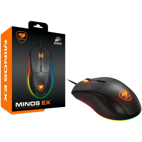 Геймърска мишка COUGAR Minos EX, Gaming Mouse, PAW3309 Optical gaming sensor, RGB Lightning, 6400 DPI, 1000Hz Poling rate, 20M gaming switches, 1.8m Cable length, 89g.
