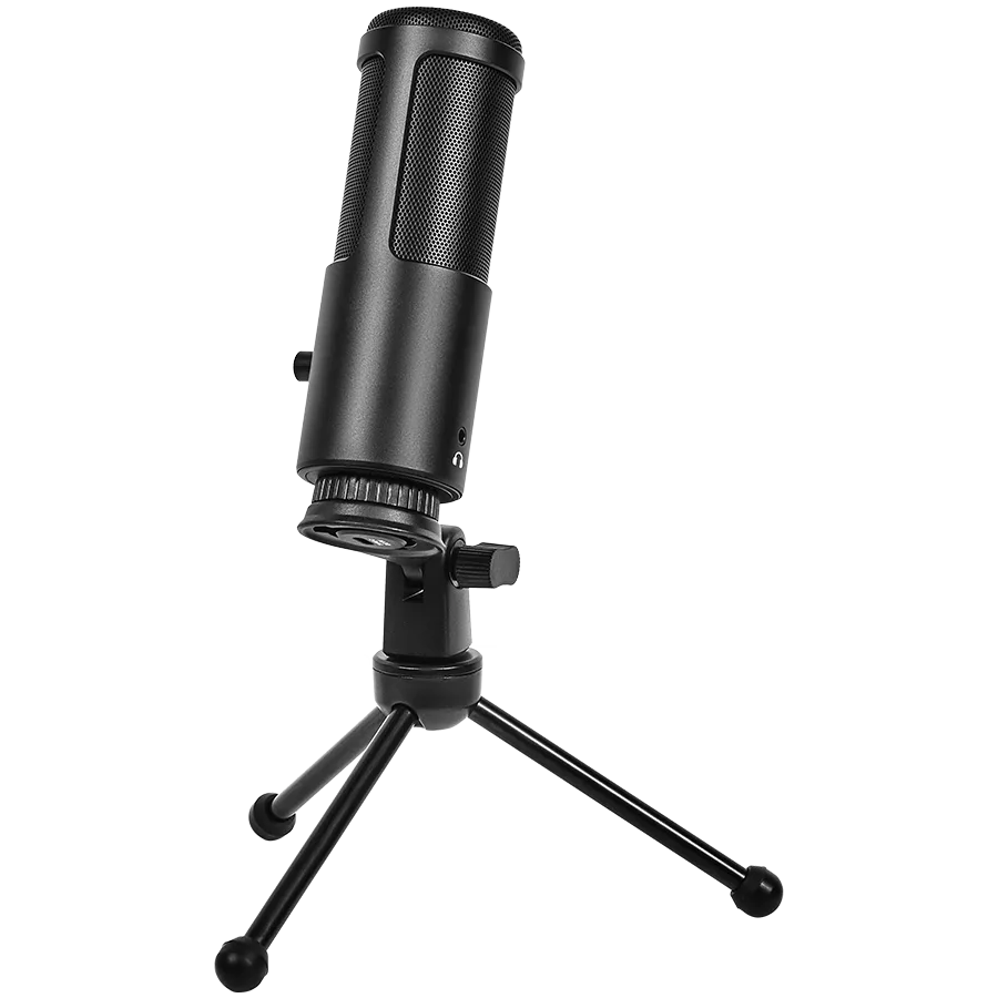 Геймърски микрофон LORGAR Voicer 521, Gaming Microphone, Black, USB condenser mic with Volume Knob, 3.5MM headphonejack, mute button and led indicator, package including 1x F5 Microphone, 1 x 2M type-C USB Cable, 1 xTripod Stand