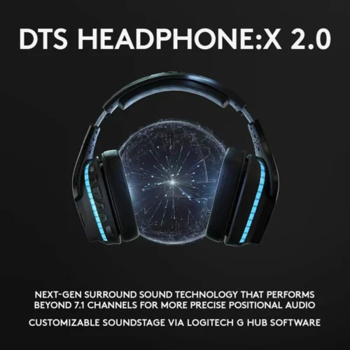 Геймърски слушалки Logitech, G935 7.1 Wireless 7.1 Surround Lightsync, Безжични, Черни