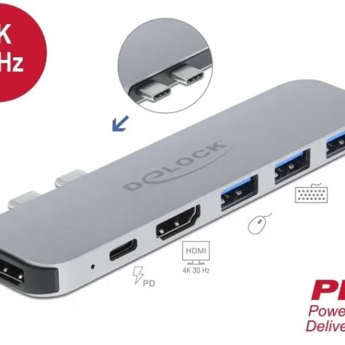 Докинг станция Delock, За MacBook, HDMI 4K, USB-A, USB-C, PD, Сива