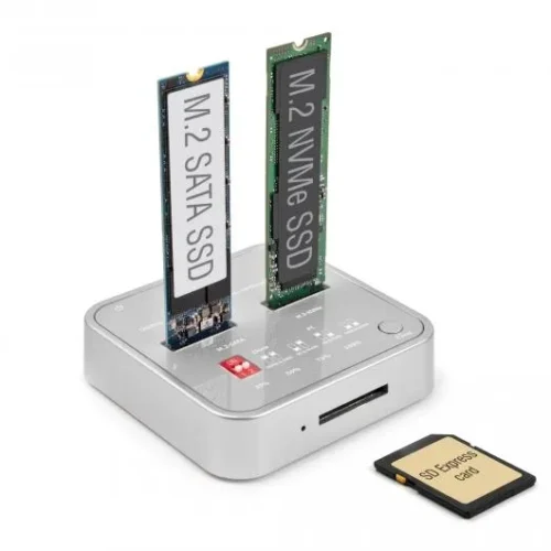 Докинг станция Delock 1 x M.2 NVMe SSD, 1 x M.2 SATA SSD, SD Express Card Reader, Клониране