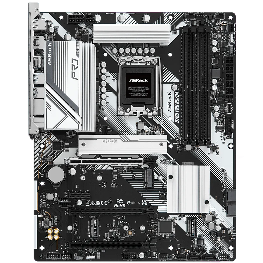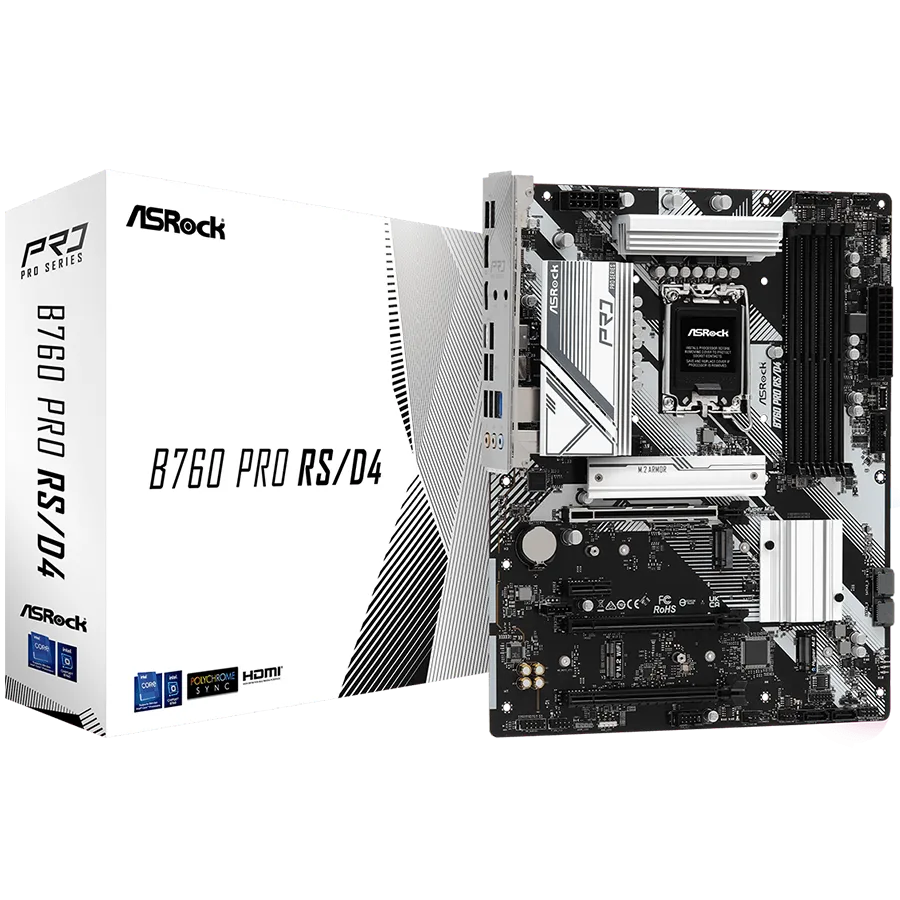 Дънна платка ASROCK MB Desktop B760 Pro RS (S1700, 4x DDR4, 2x PCIe 4.0 x16, 1x PCIe 3.0 x16, 1x PCIe 3.0 x1, 2x Hyper M.2 PCIe Gen4x4, 1x M.2 PCIe Gen 4×2, 4x SATA3, 2x USB-C, 7x USB 3.2, 4x USB 2.0, 1xRJ-45 2.5GB, 1x HDMI, 1x DP, ATX
