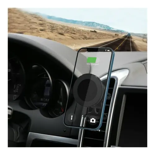 МАГНИТНО БЕЗЖИЧНО ЗАРЯДНО ЗА АВТОМОБИЛ eSTUFF Magnetic, Wireless – Black – PN ES638130Това магнитно зарядно за кола е предназначено за серията iPhone 12 и серията iPhone 13. Просто поставете вашия iPhone върху зарядното устройство и то ще се закрепи магнитно. За да постигнете най-силно закрепване, моля, използвайте го с магнитен заден капак eSTUFF за iPhone.Зарядното за кола има силен магнит и осигурява стабилно задържане и зарежда вашия iPhone, докато сте в движение.Магнитна (Apple iPhone) изходна мощност: Макс. 15WДоставя се с монтаж за вентилационен канал.Вход: DC5V 3A, DC9V 2.22A, 12V 1.67AИзходна мощност: 15W / 10W / 7.5W / 5WЧестота на зареждане: 110-205 KHzВключен е 1-метров USB-C към USB-C кабел