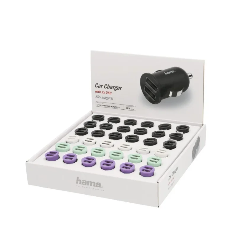 Зарядно за кола HAMA, 2 x USB, 2.4 A, Различни цветове