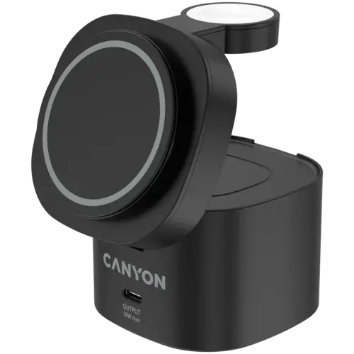 Зарядно за мобилен телефон Canyon 4 in 1 Wireless Charging Stand, 30W max, Size: 70x70x70.3mm, weight: 414g, with 65W charger and 1M cable, black