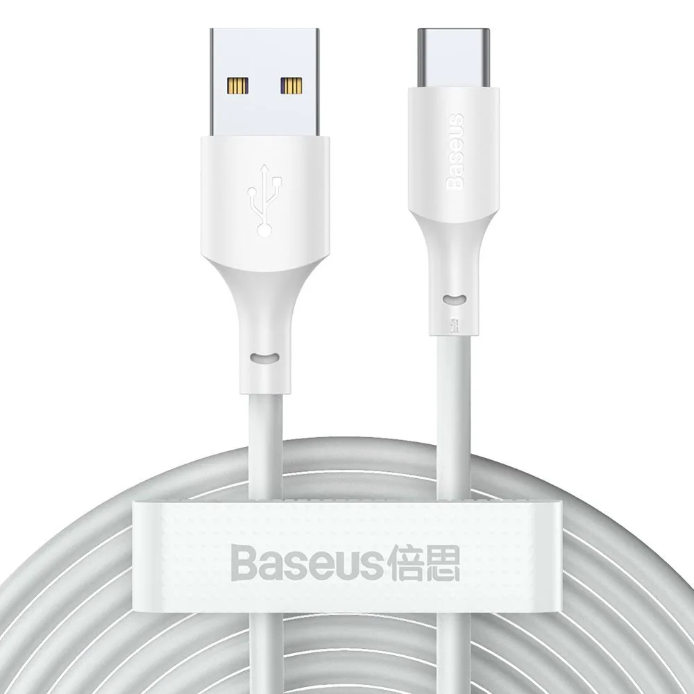Кабел Baseus TZCATZJ-02 USB-A към USB-C за бързо зареждане 2 броя, 40W, 5A, 1.5м, бял