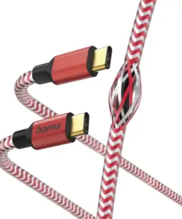 Кабел HAMA Reflective, USB-C мъжко – USB-C мъжко, 1.5 м., Червен