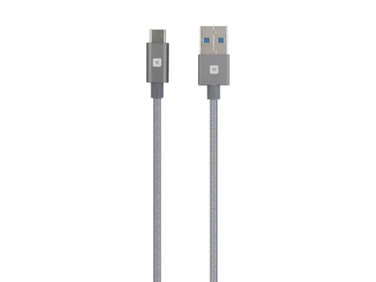 Кабел Skross, USB-A – USB-C, Метална оплетка, 1.20 м, Сив