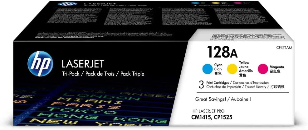 КОМПЛЕКТ КАСЕТИ ЗА HP COLOR LASER JET CM1415/CP1525 Print Cartridge /128A/ – TRIPLE PACK – C/M/Y – CE321A/CE322A/CE323A – PN CF371AM -`3x1300k`