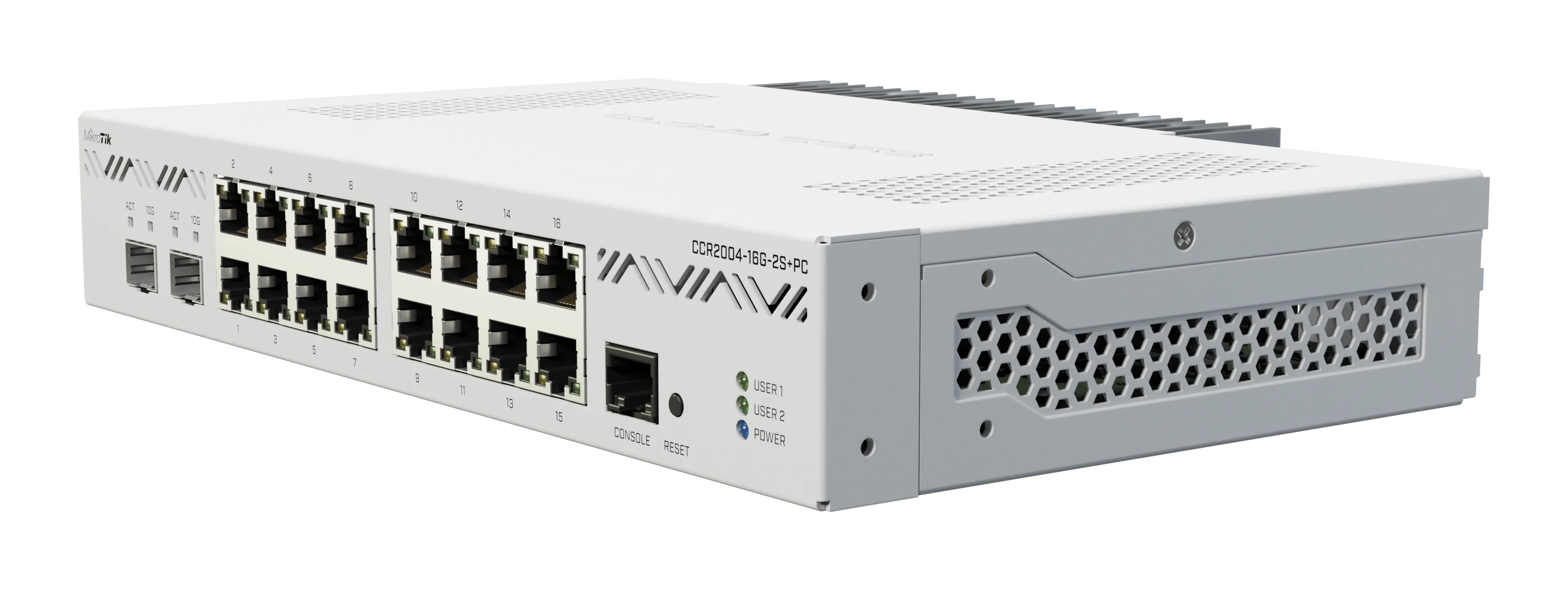 Комутатор MikroTik CCR2004-16G-2S+PC с 16 Gigabit порта и 2 SFP+ порта