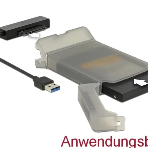 Конвертор Delock, USB 3.0 Type-A мъжко – SATA 6 Gb/s 22 pin, 2.5″ защитен калъф
