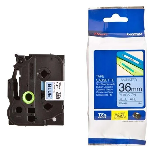 ЛЕНТА ЗА ЕТИКЕТНИ ПРИНТЕРИ BROTHER ТИП TZ – 36 mm x 8 m – BLACK ON BLUE TAPE – PN TZE561 (TZE-561)