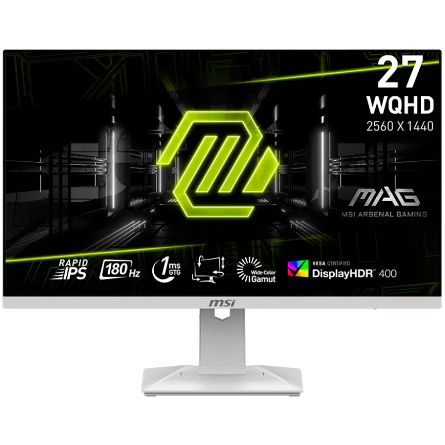 MSI MAG 274QRFW Gaming Monitor, 27″ 180Hz, WQHD (2560×1440) 16:9, Rapid IPS Anti-glare, 1ms, 400nits, 1000:1, 178/178, AMD FreeSync, DisplayHDR 400, Adjustable Stand, 1x DP, 2x HDMI, 1x Headphone out, White, 3Y Warranty