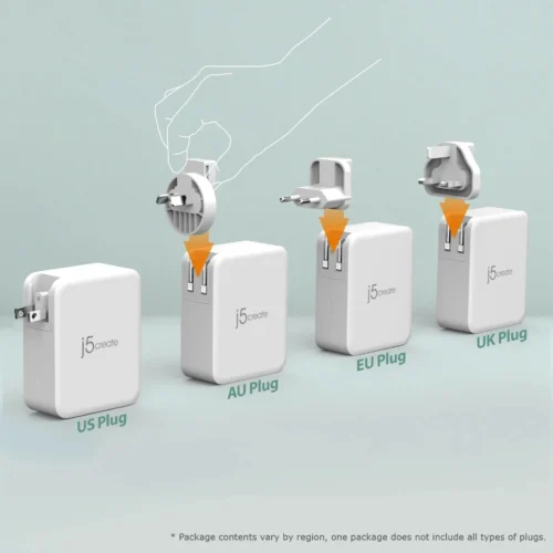 Мрежово зарядно j5create JUP43130E 130W, 4 порта, USB-C, USB-A