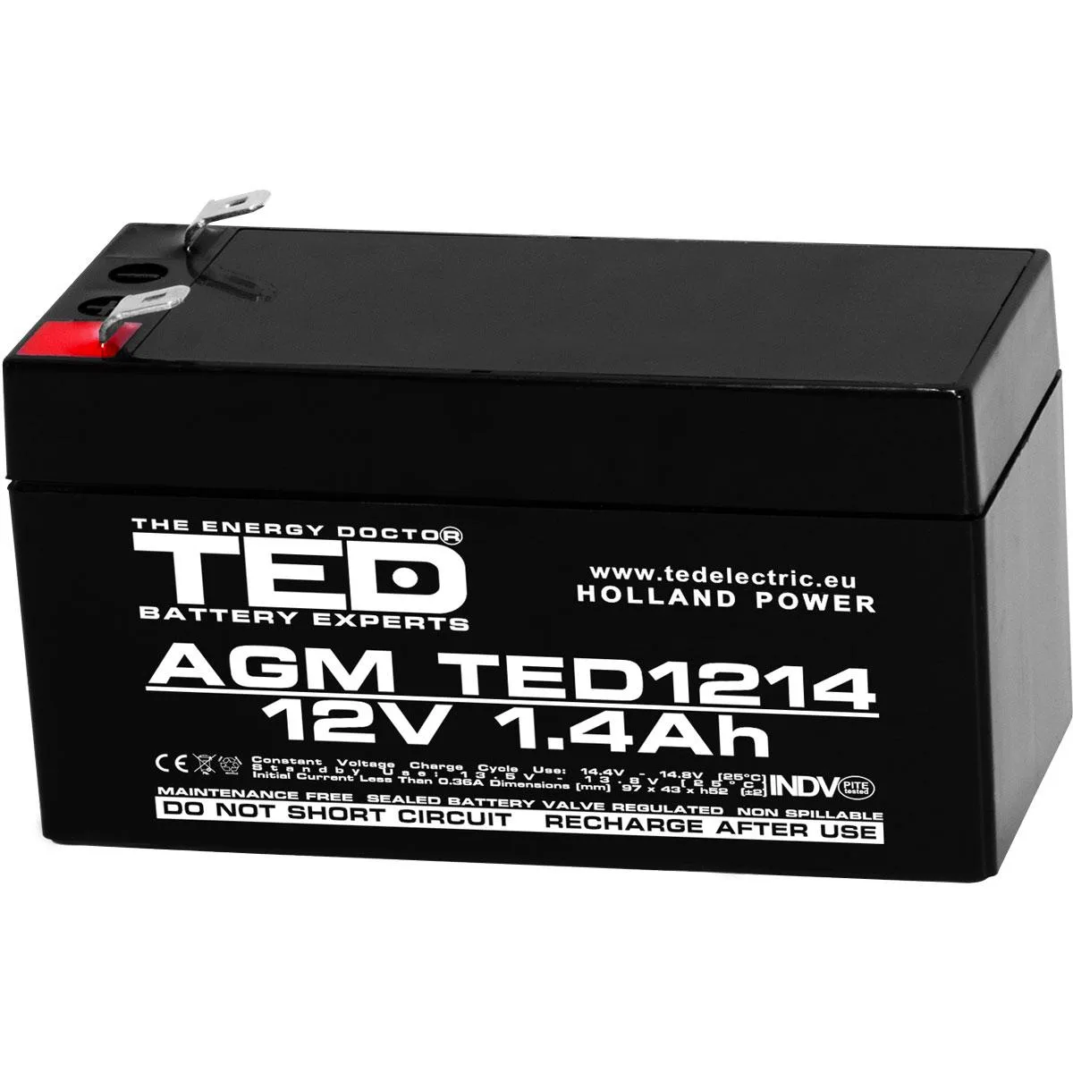 Оловна батерия TED ELECTRIC, 12V / 1.4 Ah- 98/43,5/53 mm AGM