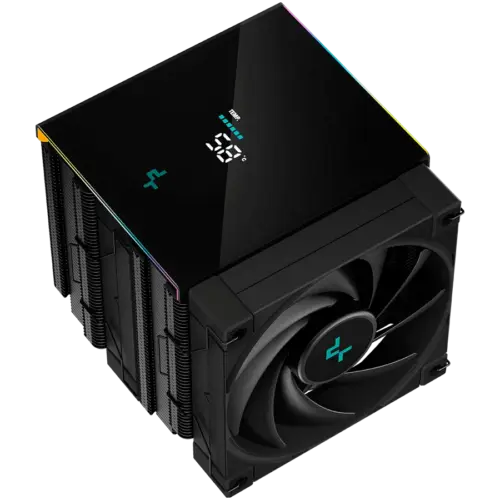 Охладител за процесор Охладител DeepCool AK620 Digital, CPU Air Cooler, 2x120mm FK120 PWM Fan, Digital Display, ARGB, TDP 260W, 6 Heatpipes, LGA2066/2011-v3/2011/1700/1200/115x, AMD AM5/AM4, 129x138x162 mm(LxWxH), 3Y, R-AK620-BKADMN-G