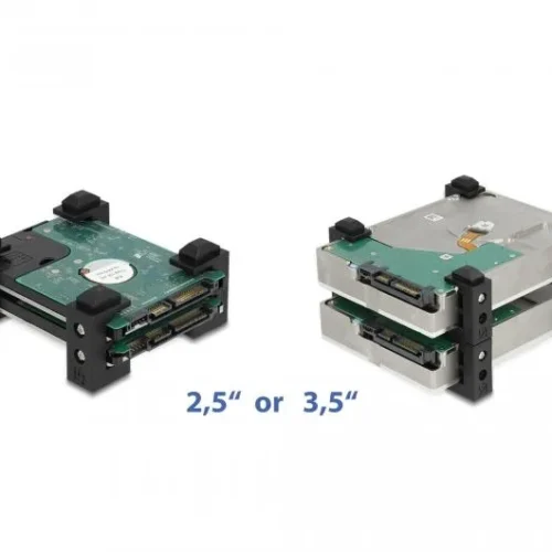 Скоба за твърд диск DeLock 18027, За 2x 2.5" SSD / 1х 3.5" HDD, Черен