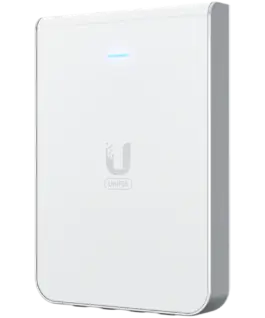 UniFi6 In-Wall. Wall-mounted WiFi 6 access point with a built-in PoE switch.