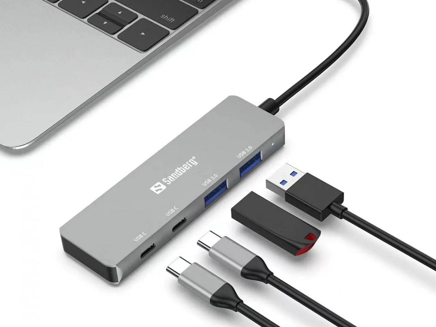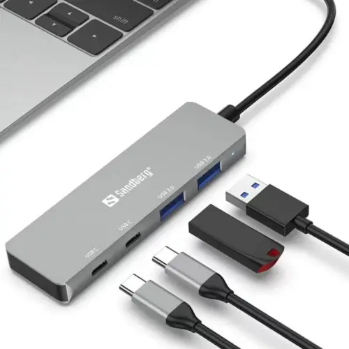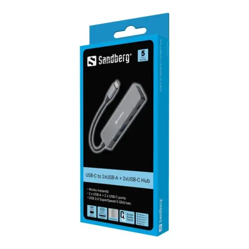 ХЪБ SANDBERG USB-C to 2xUSB-A + 2xUSB-C – Gray – PN 136-50Хъбът Sandberg USB-C към 2xUSB-A + 2xUSB-C ви позволява да разширите USB-C порта на вашия компютър с 2 нови USB-C порта и 2 нови USB-A порта. Можете например да свържете едновременно USB флаш устройство, принтер и мишка. Работи веднага, без инсталиране на драйвери.Действа мигновено2 x USB-A + 2 x USB-C портаUSB 3.0 SuperSpeed 5 Gbit/sec