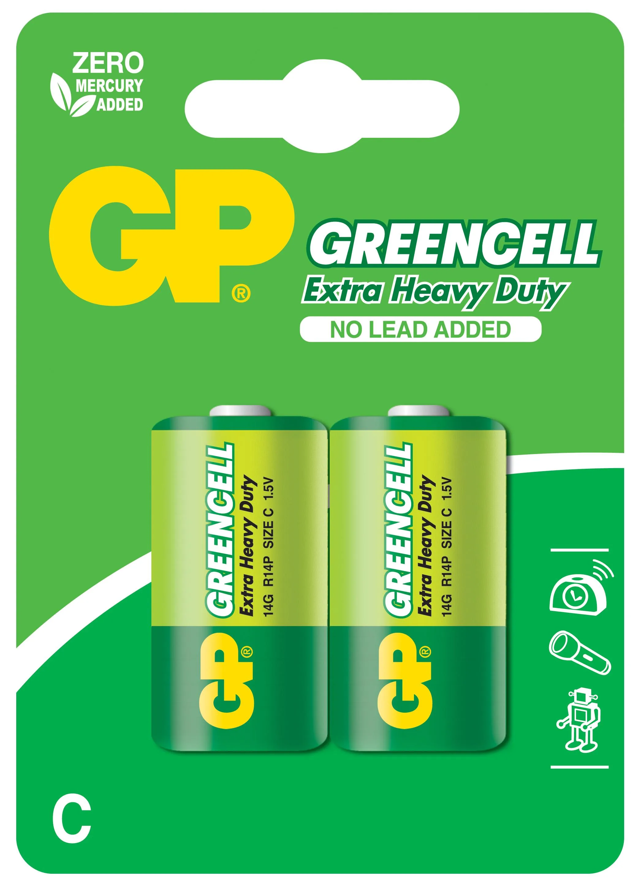 Цинк карбонова батерия GP R14 14G-U2 Greencell, 2 бр. в опаковка, BLISTER, 1.5V