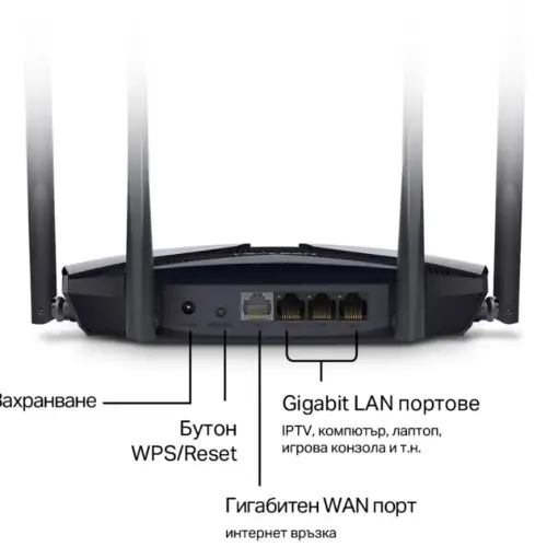 2-лентов Gigabit WiFi 6 рутер Mercusys MR70X AX1800