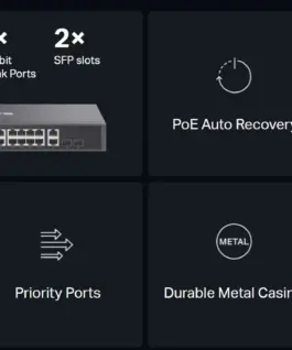 Ethernet портове : RJ45 Ports • Standard: 802.3 af/at compliant • PoE Ports: Ports 1–16 • Power Supply: 192W