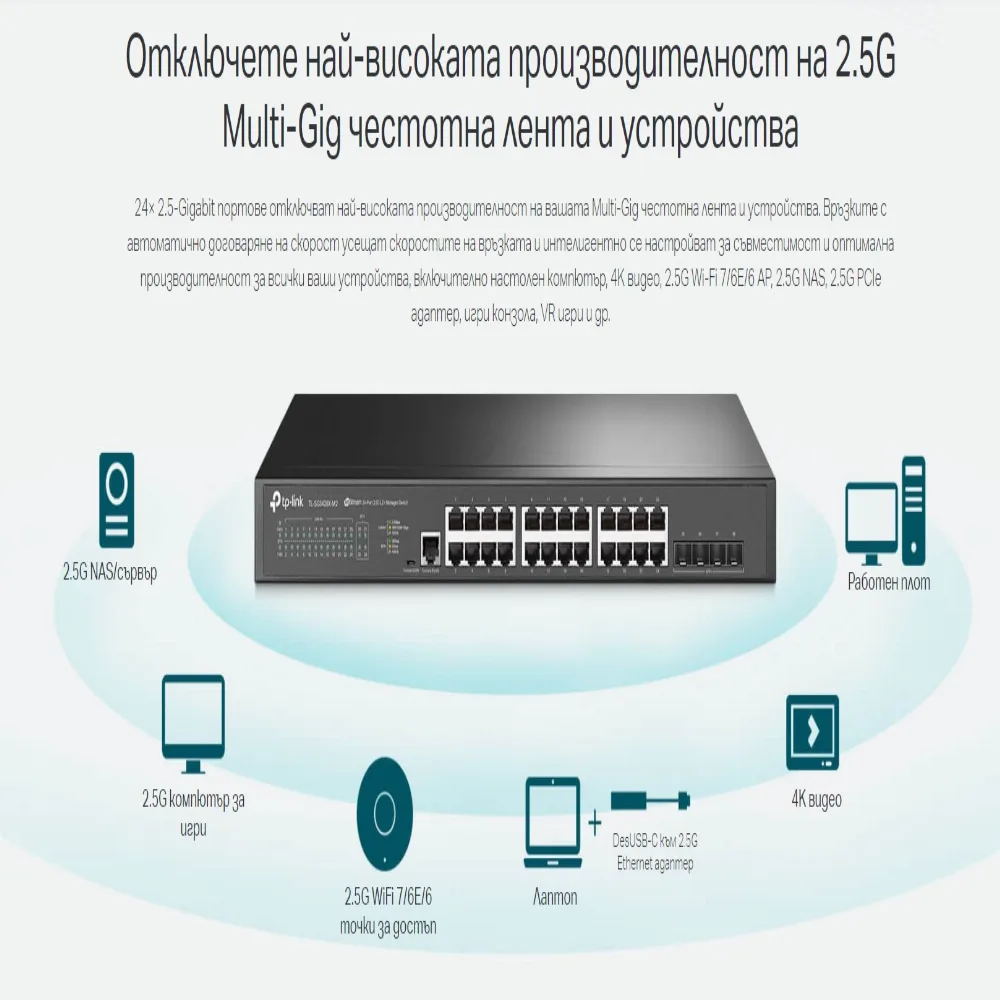 Ethernet портове : 24× 2.5 Gbps RJ45 Ports