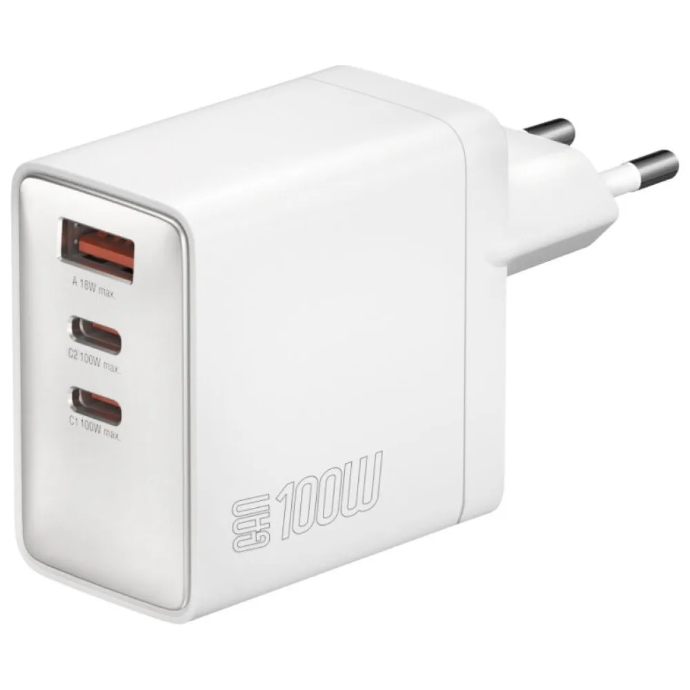 The maximum power of 100W makes the charger cope not only with phones and Таблетs, but also with Лаптопs, ultrabooks or portable consoles. It is equipped with three ports: two USB-Cs that support fast charging in the Power Delivery standard and a USB-A port with Quick Charge technology, which allows you to simultaneously power several devices and save time. With intelligent energy management, the charger automatically adjusts the power to the connected equipment, ensuring maximum efficiency and safety.