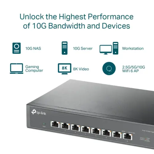 8-портов 10G настолен комутатор TP-Link TL-SX1008Филтър Swich скорост : 100Mbps/1Gbps/2.5Gbps/5Gbps/10Gbps