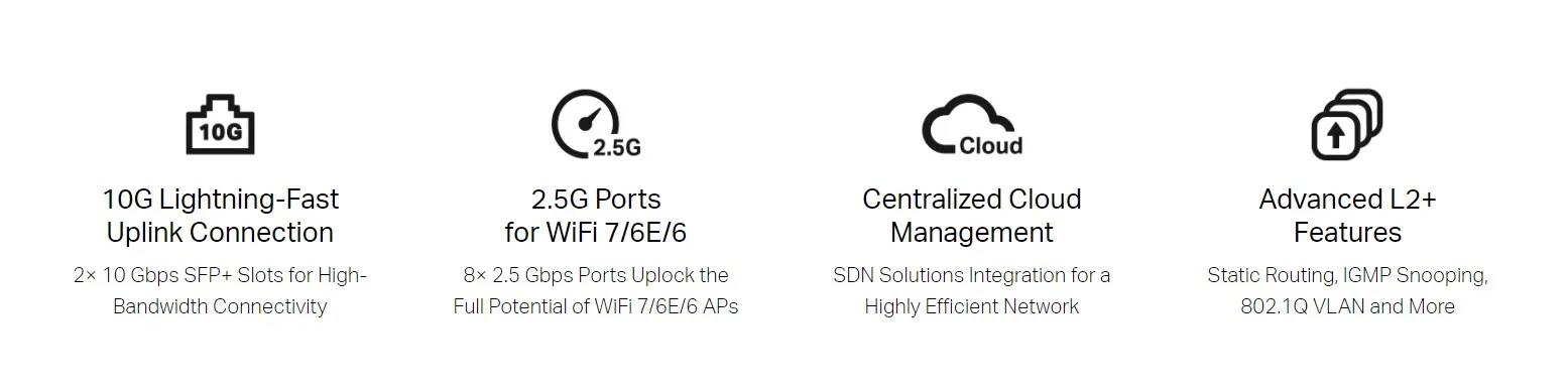 | интерфейс | 8× 2.5 Gbps RJ45 Ports1x Micro-USB Console Port2× 10G SFP+ Slots1 Console Port |