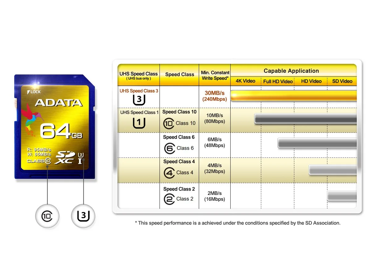 With read/write speeds up to 95/60 MB/s, the Premier Pro series of SDXC UHS-I Speed Class 3 (U3) high-speed памет card delivers excellent performance. It fully supports the latest 4K2K photographic device, and enables professional grade ultra-fine high-quality images to be captured. It boasts fast and smooth transfer speeds, especially with larger files. Premier Pro памет cards allows users to fully utilize the power of burst mode photography. The high performance, reliability, storage capacity and durability of the SDXC UHS-I U3 памет card enables photographers to capture every moment without fear of losing памет space.