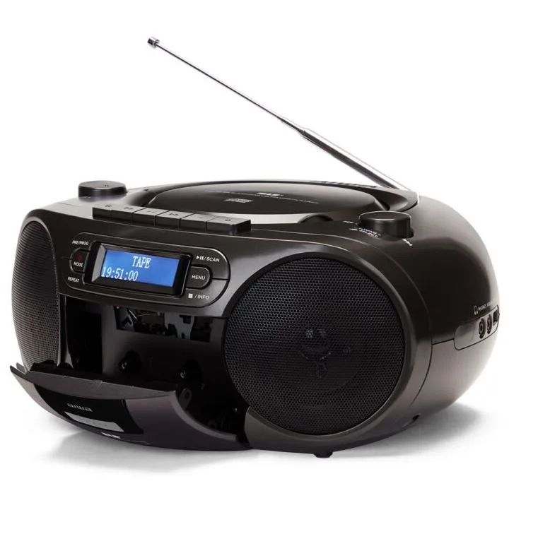 - ALL-IN-ONE BOOMBOX WITH DAB +: Portable CD/MP3/USB/TAPE/BT player with FM PLL radio
