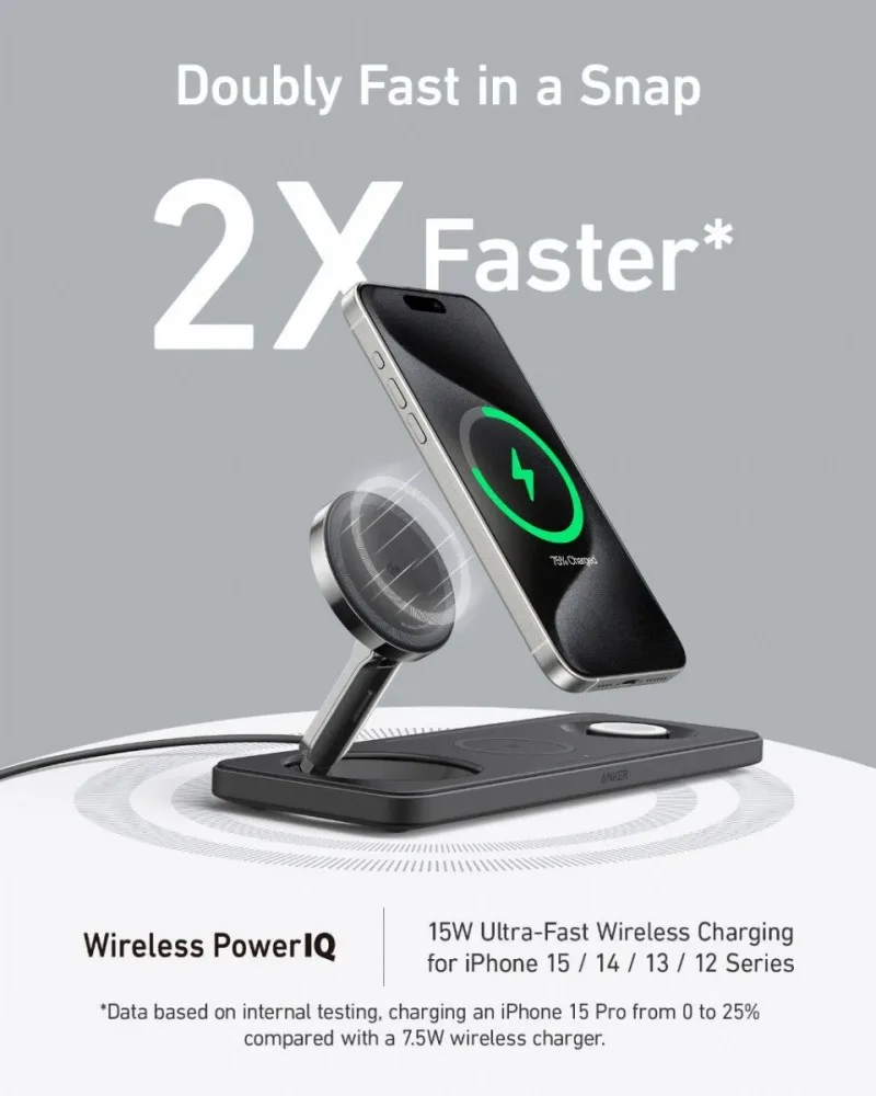 Anker зарядно MagGo 3-in-1 Pad 15W Qi2 черен