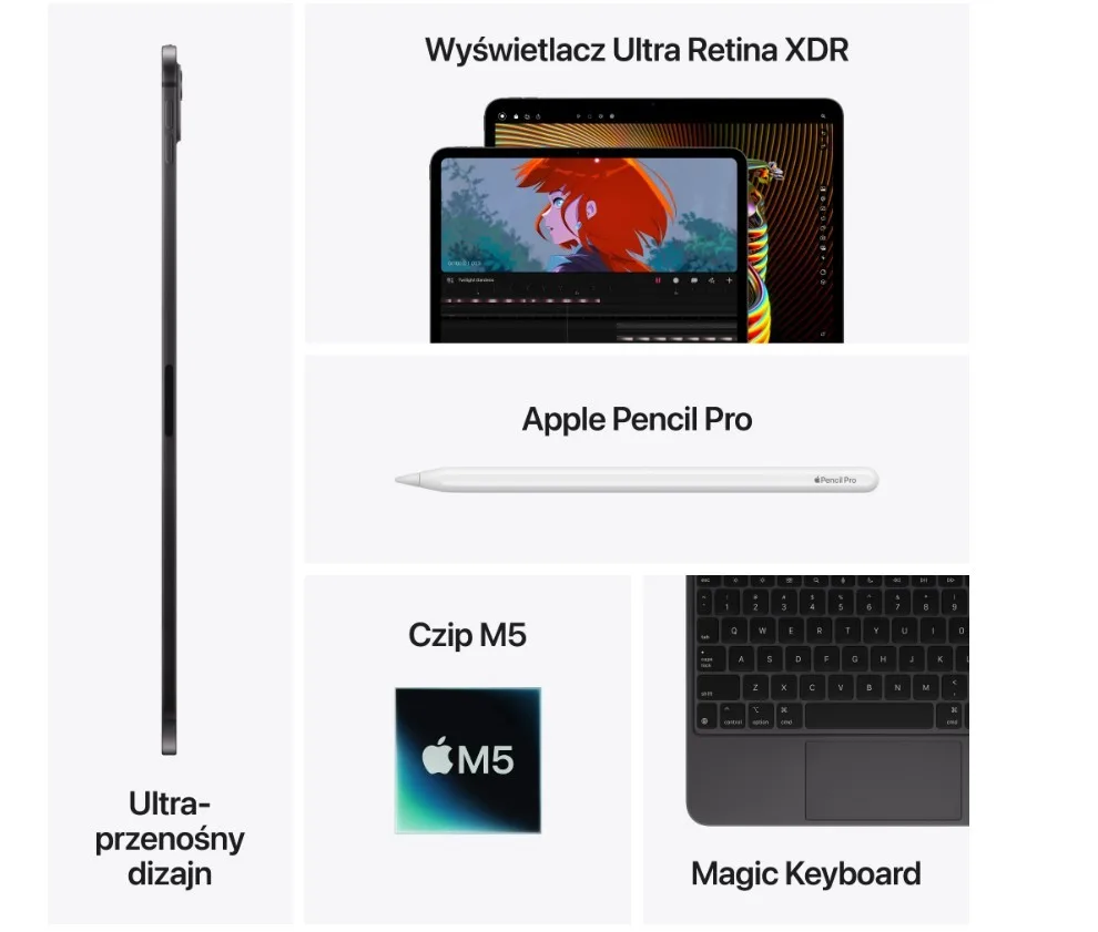 The M5 chip pushes the limits of what the iPad Pro can do, delivering unprecedented performance and energy efficiency. The next-generation 10-core GPU with powerful Neural Accelerator cores radically speeds up AI-driven tasks, such as token generation in large language models (LLMs) or image creation. Meanwhile, the CPUs multi-threaded performance and faster памет ensure astonishingly fast workflows.