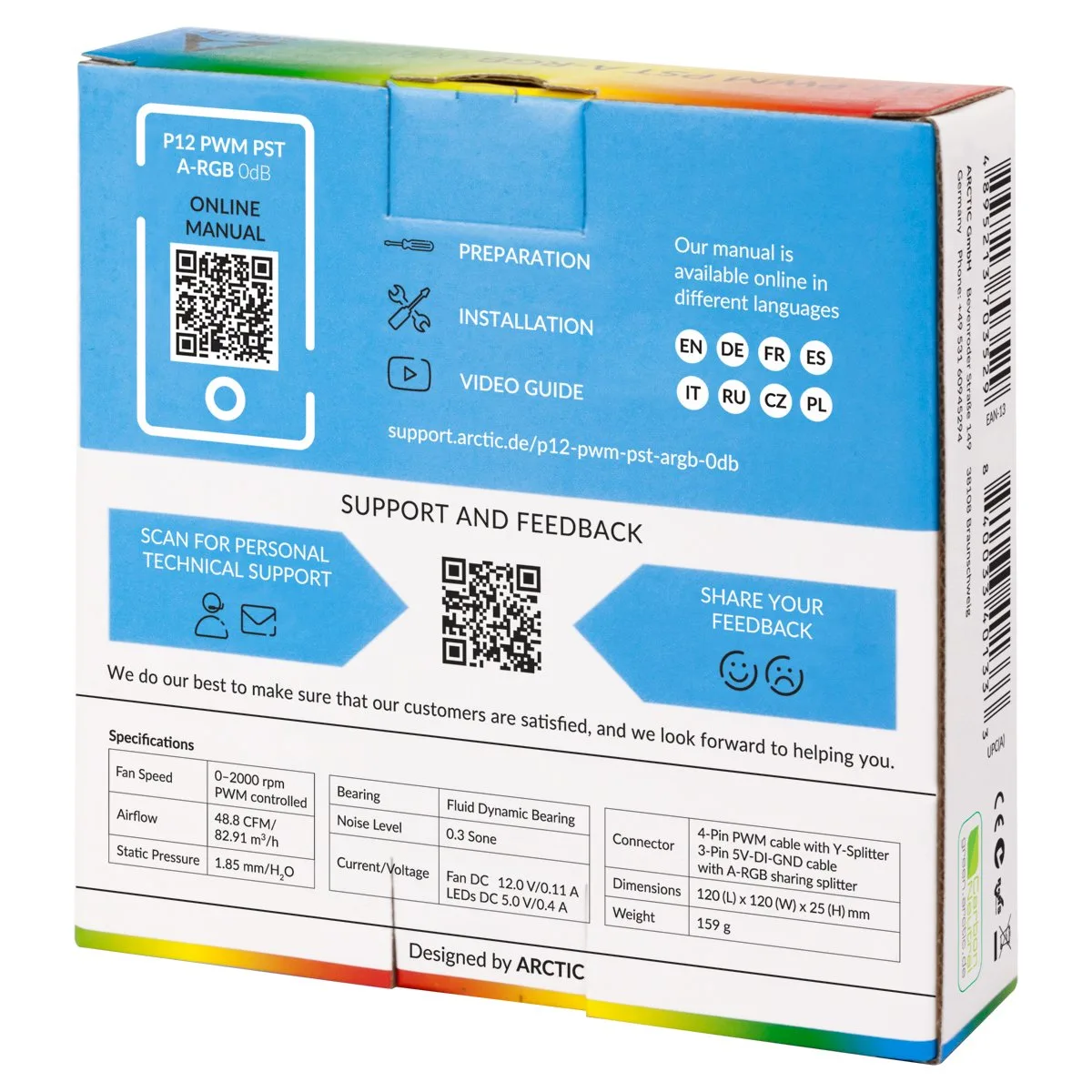 Arctic вентилатор Fan 120mm P12 PWM PST A-RGB 0dB (White)
