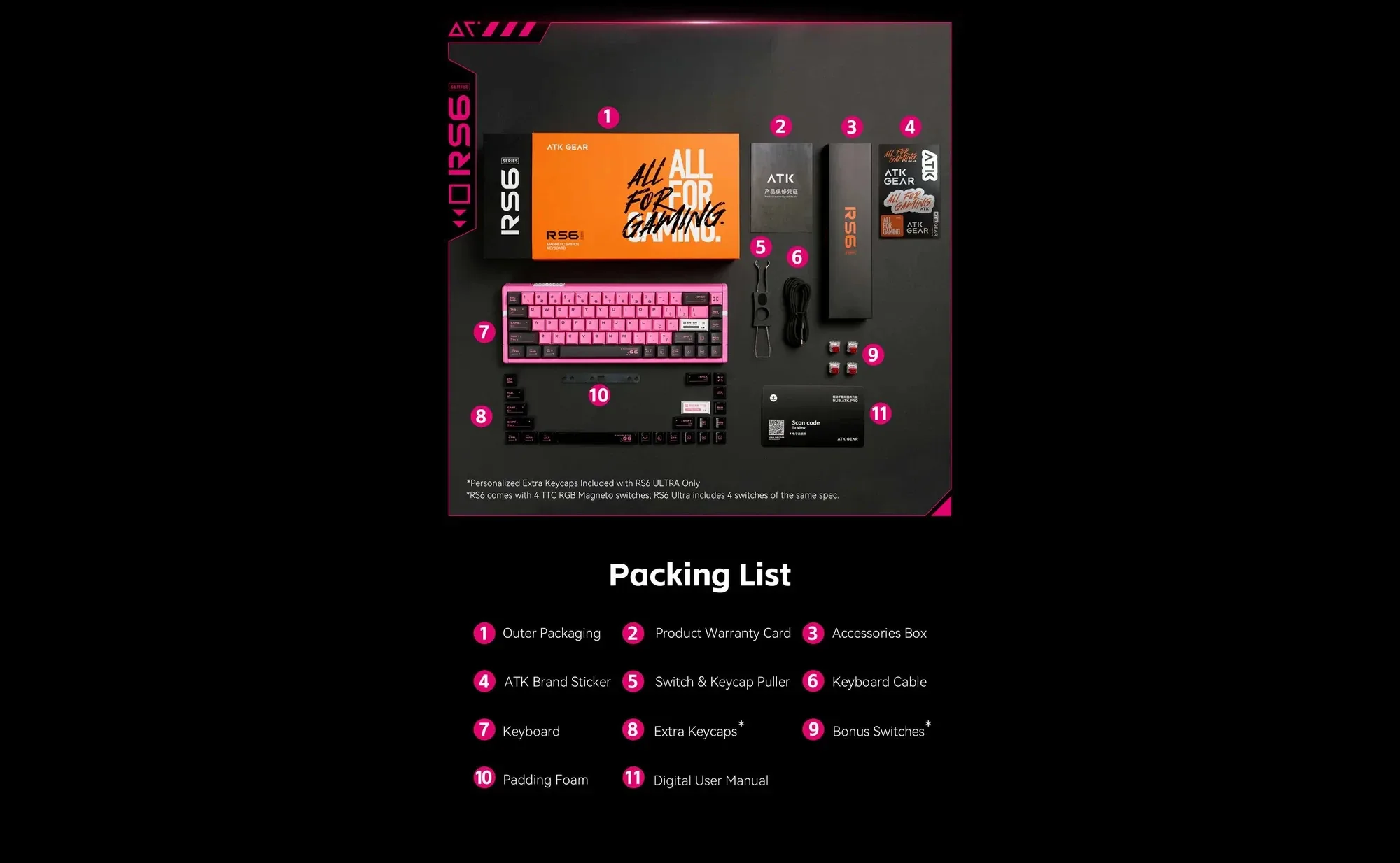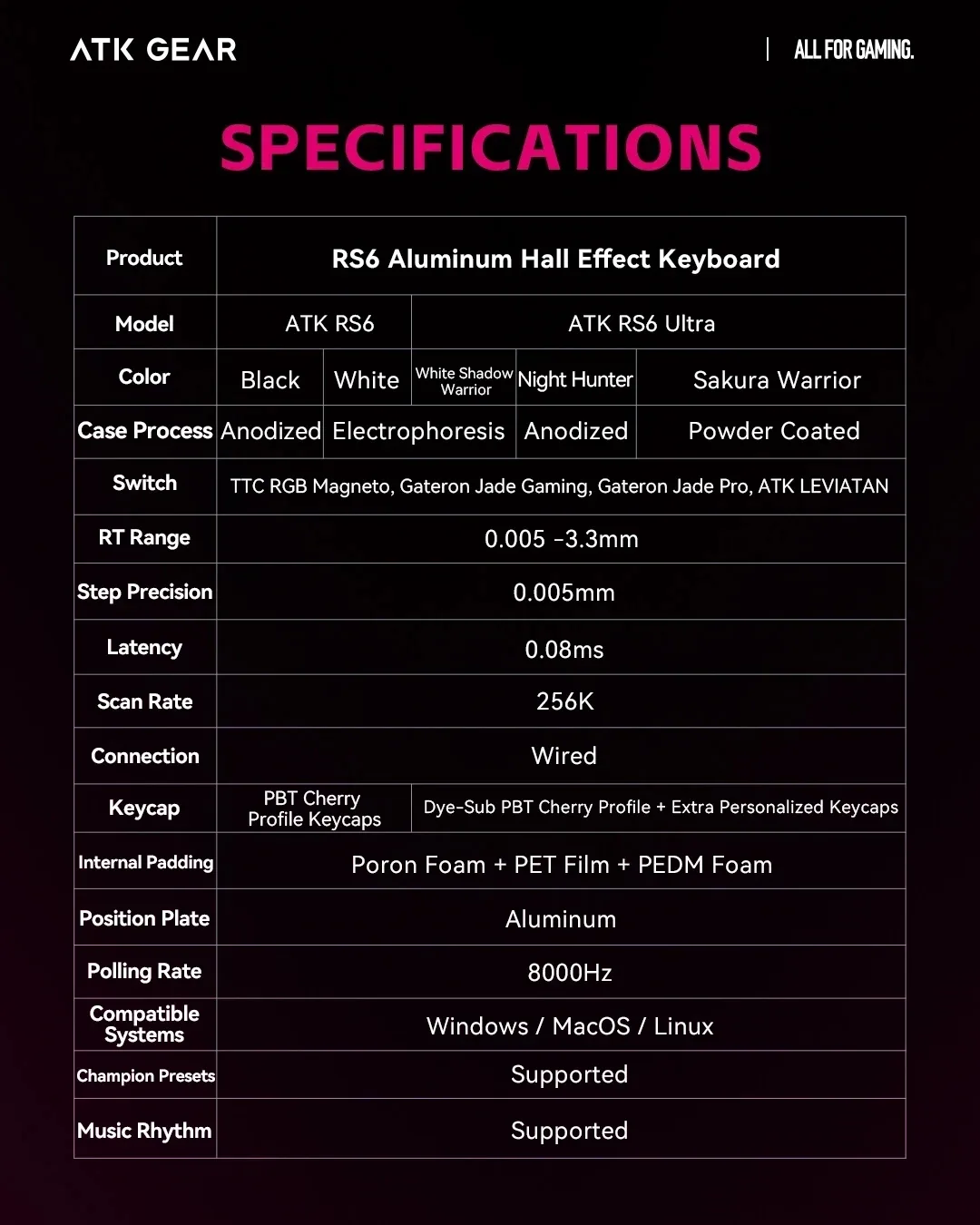 ATK професионална геймърска механична клавиатура Professional Gaming Mechanical Keyboard RS6 Ultra – 8K, TTC RGB Magneto [Linear] – Sakura Warrior