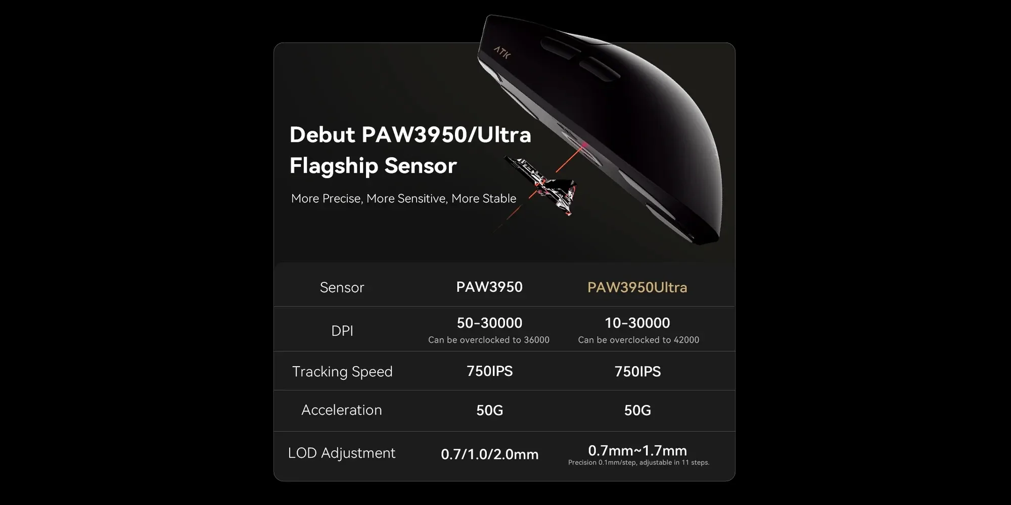 За лява и дясна ръкаМИКРОКОНТРОЛЕР (MCU) : NORDIC 52840СЕНЗОР : PAW3950УСКОРЕНИЕ : 50 GСКОРОСТ НА СЛЕДЕНЕ : 750 IPSЧУВСТВИТЕЛНОСТ : 36000 dpiLIFT OFF DISTANCE (LoT) : 1 mmСКОРОСТ НА ПРЕДАВАНЕ : 8000 HzСУИЧОВЕ : OMRON Optical SwitchБРОЙ БУТОНИ : 6ПРОГРАМИРУЕМИ БУТОНИ : ДаБАТЕРИЯ, ТИП : Lithuim-ion rechargableБАТЕРИЯ, ВРЕМЕ НА РАБОТА : Up to 75hrs at 1000HzДЪЛЖИНА НА КАБЕЛА : 180 cmРАЗМЕРИ : 127 x 62 x 40 mmЦВЯТ : БялТЕГЛО : 49 gДОПЪЛНИТЕЛНИ : Dual 8000Hz Rapid Response (8K Dongle Included)