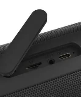 The speaker has a built-in microphone, SD card slot and an AUX port, allowing you to connect to an external audio source such as an adapter or MP3 player at any time. The audio input jack allows you to connect almost any electronic device