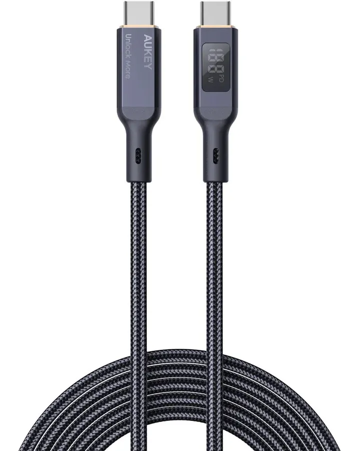 Take full control of charging your devices with the Aukey USB-C cable with LED display, which displays information about the current charging power. You can use it to charge both a Лаптоп and a phone, console joysticks and any other devices with a USB-C connector.