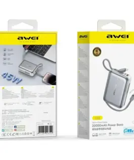 Powerbank AWEI with a capacity of 20 000 mAh is a modern and extremely convenient energy source, created for users who value mobility. The device is equipped with double, built-in wires, which at the same time act as a charging cable and a practical leash. Thanks to this, you do not need to carry any additional cables with you, and the powerbank can be easily attached to the bag or carried on the wrist.