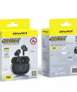 The compact Awei T61 TWS in-ear headphones are a perfect solution for people who value classic style – this model ensures great appearance and comfort of use. Thanks to their small size, they will accompany you wherever the user needs them – at work, during exercise or, for example, while roller skating. T61 TWS is characterized by an IPX6 waterproof class, which guarantees safe use of the headphones during intense training without worrying about moisture from sweat or precipitation such as rain or snow.